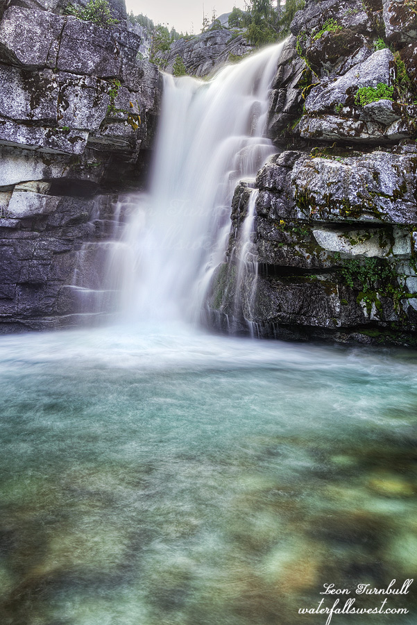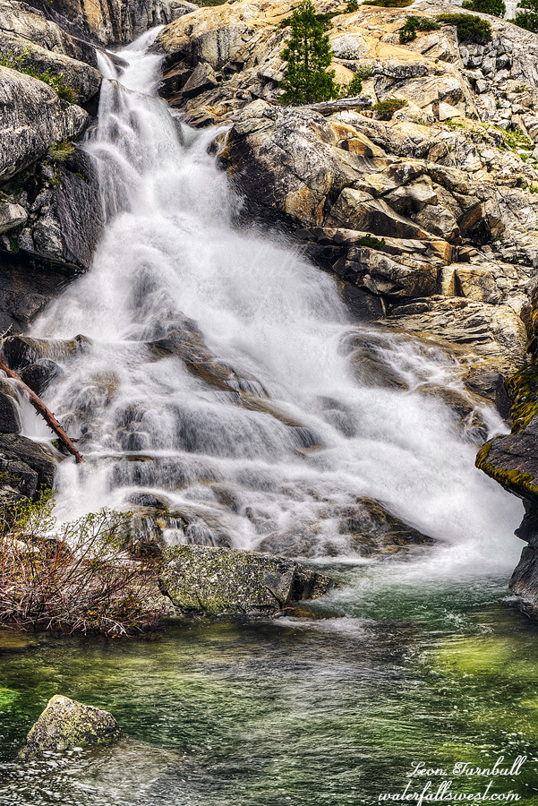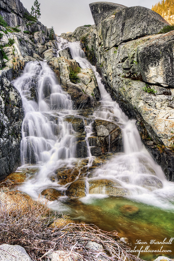 In the afternoon clouds rolled in. I decided to go down to the waterfall and check it out. Since it was cloudy I took some photos. This was the smartest thing I did all day. It was easy getting down to it so I was going to come back later in the evening as well. Canyon Creek Lakes Falls is a very lovely 85 ft. cascade. I had not been to it before (it is not too far above the Far Upper Canyon Creek Falls) and I was not expecting to find such a nice waterfall here. This is why I wanted to make sure I got to this one in good lighting conditions and why I decided to take an extra day camping at the lower lake. It would have been a good decision … HOWEVER …