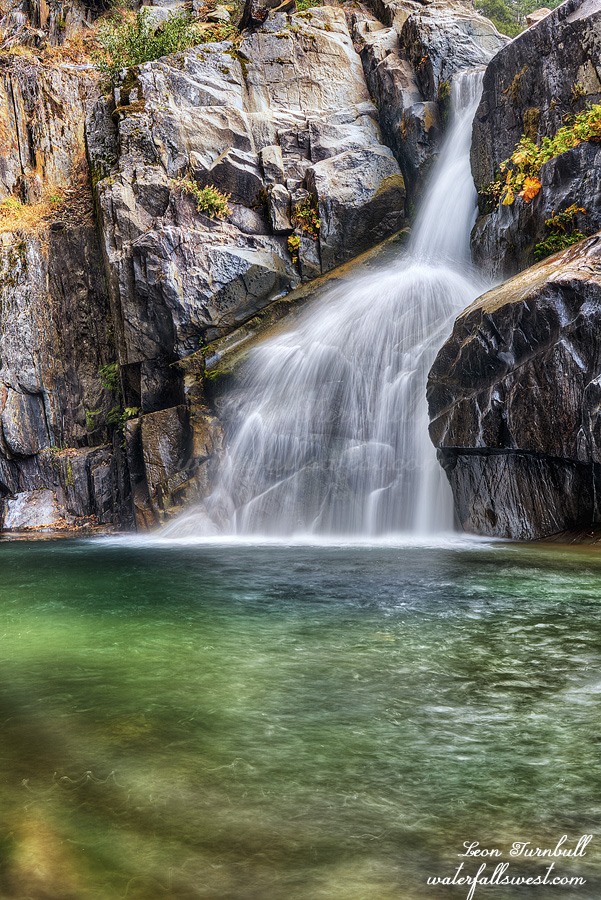 None of the waterfalls are huge ones, but they are all nice and all > 20 ft high. The biggest one on the creek is this one shown here and it is 50 ft. high, a magnificent 33 ft. plunge, followed by a 17 ft. slide. It is certainly the most impressive of all the falls, though not the prettiest.