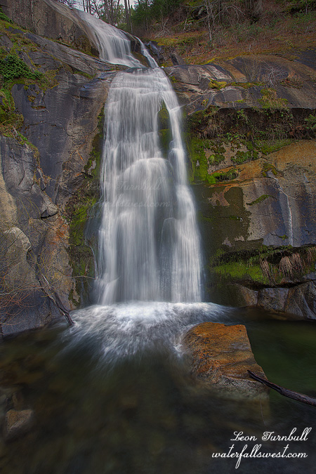 I tried to go out to a waterfall on Saturday. With four inches or so of new rain in the foothills I figured Canyon Creek at Gold Run would be perfect. And it almost was. I like to call Canyon Creek, Tick City because it is infested with the little buggers in the spring. I once had to brush off about fifty ticks clinging to me after hiking about a mile down the canyon. I figured this trip would be no different. It is early in the season but the ticks are out already due to the warm weather and lack of precip this year. Out in force. I have heard it is the worst season for ticks perhaps ever (and I know that the last two seasons have been very awful). However, I did have some good news. This last storm brought low snow, about a foot to Gold Run. All the ticks were buried under it, making my hike more difficult but much more pleasant with no ticks. Unfortunately it also brought one more difficulty: that darn narrow freaky bridge crossing over Canyon Creek just above the first waterfall. As it was very early in the morning and very cold, the bridge was a skating rink, very icy, and very dangerous to cross. One slip and I would have plunged into the cold fast rushing creek below. Not good. I decided to turn back. A wise decision but it made me very disappointed.