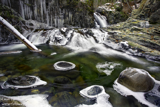 Here’s another view of beautiful snow and ice filled Shackleford Falls. Aren’t those icicles hanging down so totally cool?