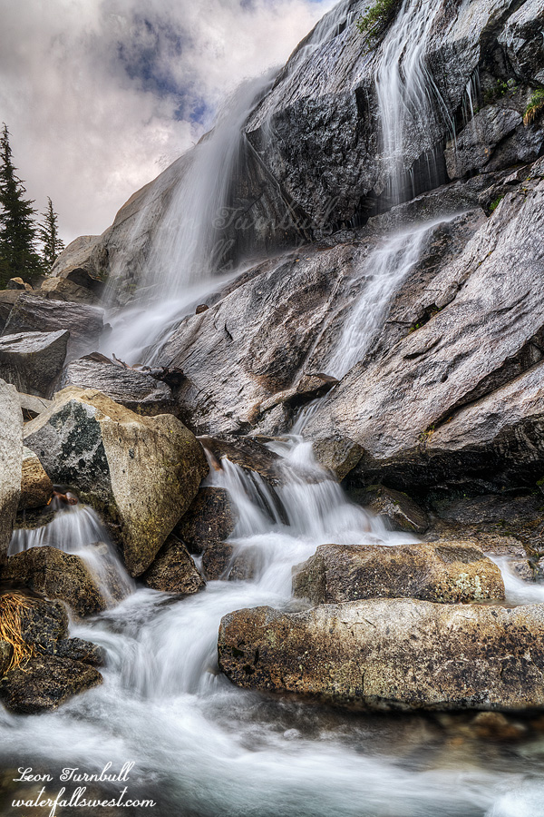 I got up early, packed up, and continued my hike. First stop: Robinson Creek Falls (pictured here). This was the only waterfall on the entire trip. It was not flowing very decent, but I took a photo anyway. It is a big waterfall and would be impressive at high flow (if you can get to it at high flow). It was also quite difficult to get up close to. There is a large rock slide beside the creek. The boulders were huge. This, as I found out soon enough, would be the main theme for the trip: Enormous rock slides. I managed to find a path over the rocks and to the creek, but only by squeezing through a very narrow slot through a couple large rocks. If I was two inches wider I would not have made it (I am not kidding – on the way back I almost could not squeeze through). Once at the creek, I had to cross over to the other side of the stream to photograph the waterfall. In high water, this is not going to be possible, but the waterfall certainly would be much better if you could find a view of it.
