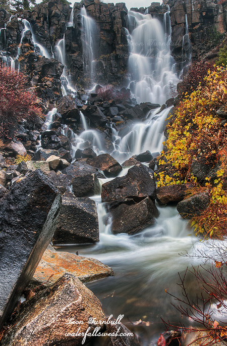From the first waterfall on Jones Fork Silver Creek, I continued cross country up to Lower Gertrude Lake Falls. I have been to this waterfall before, but the light was horrible, and I was hoping *this time* to arrive in time for good lighting. However, I was 30 minutes late getting to that first waterfall. It was not looking good for the second one either.