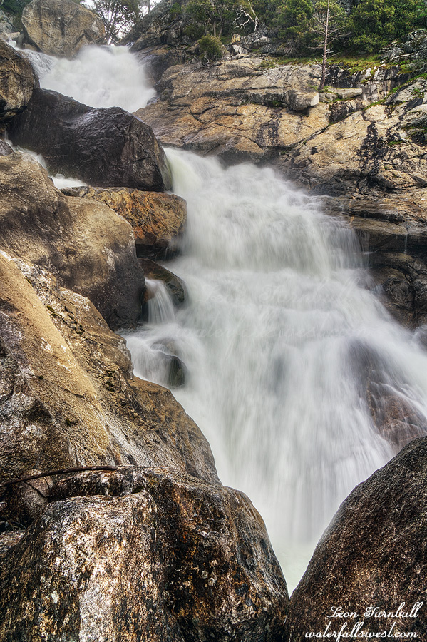 I did not sleep well so I got up later than originally planned. I have had a sore neck for some time and can only sleep on one side. It is quite uncomfortable in a sleeping bag. I took my time hiking back, stopping for a coffee break in the sun alongside the lakeshore, trying to photograph Kibbie Falls, and stopping at the dam waterfall to take some photos as well. I was home in time for the Canucks game. It was a crazy adventurous weekend in Yosemite National Park.