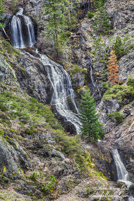 Last June I made it down to Tadpole Canyon Creek on the strangest of days. It was foggy (which is very odd for June), and indeed it was so foggy that I literally could not even see the waterfall. The fog slightly lifted for about 10 seconds and I was able to glimpse this majestic waterfall (and also take a picture). It was so nice of God to do this for me. But I vowed to return to the location this year, with no fog, and also when the waterfall would be flowing better. I did both things, but with the awful snow pack this year and all the snow melted already, the waterfall was only flowing marginally better, yes it was flowing decent, but it was not going bonkers (like it should be doing at this time of year). I guess I may need to make another trip back next year (which sure as heck BETTER be a good year).