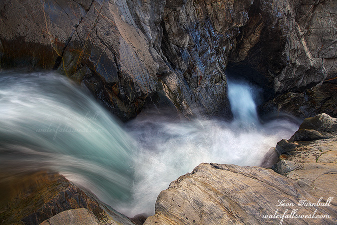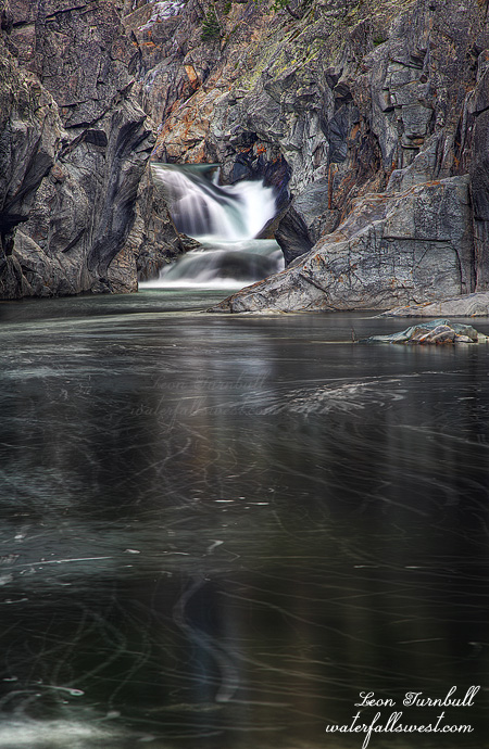 As I approached the waterfall, I could see the sun was already on it. It was only 7AM, but I was already too late. But God does provide! I made my way down to the bottom of the falls, and as I did so, clouds rolled over in front of the sun. I now had plenty of time to photograph the waterfall. Thank you Lord! It was an awesome morning at Upper Glen Alpine Falls. The snow around the waterfall was really nice, and it was flowing a lot more than it was when I was here in the Fall. That is because all that snow we received last week is already melting. I took my time, enjoyed the view of the waterfall, then hiked back down to photograph the lower falls. The bike ride back to the car was much more tiring, as it is more uphill; I am sure out of biking shape. I was quite tired by the time I got back to the car. Time to go get some breakfast in Tahoe. Phew.