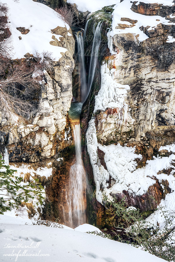 My route took me past Mill Creek Falls again. This time, there was only one other set of tracks on the trail. (unlike at Christmas, when the trail was very well trodden). Mill Creek Falls was flowing well, even better than before. This was due to the snow melting from all the warm weather we have had. Kings Creek Falls should be fantastic … so I thought.