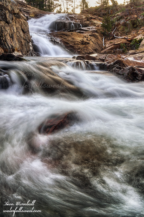 Gerle Creek Falls is 35 ft. high. I was surprised the creek was flowing so strong. It is a controlled creek but I figured that by this time of year they surely would have reduced the flow from Loon Lake. Interesting, but I was happy to see this. It is a pretty waterfall. We took our photos and continued on the trail past Wentworth Springs. All in all we hiked about 7.5 miles. It was a magnificent and very cold morning in Eldorado National Forest.