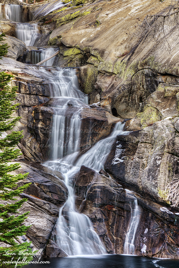 I have been to Chilnualna Falls before in 2009 (and at a better time of year). So why return, you may ask? Well, I had three goals for this trip. All were successful. The first was to see a new waterfall on the North Fork Chilnualna Creek. I did this on day one but the creek flow was pretty low. This one would be much better to see in the spring. The second goal was to get (some!) photos of the upper falls. I have been to it before, obviously (or maybe not so obviously), but somehow I lost all my photos of it. It is a mystery. After going to the first waterfall on the north fork I came back to the bottom of the upper falls. This gets very late sun so I had to wait until almost sunset before I could take photos. I was about 45 minutes ahead of time. It was very cold waiting in the shade at the base of the waterfall. Finally I could take my shots. You can only see the bottom section from here so I went back up to where I could see the entire length of Upper Chilnualna Falls. It is 145 ft. high with all the tiers included. It was sunset now. My hands were very cold. Thankfully it was a short walk back to camp. I hopped into bed. It was only 5PM. I did some reading for awhile. I tried to sleep.